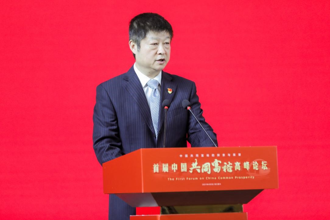 陈先春在致辞中指出,今年两会期间,国家明确指出要支持浙江高质量发展建设共同富裕示范区,主要是探索推进共同富裕的体制机制和制度体系,形成可复制可推广的经验,建立示范区的标杆。首届中国共同富裕高峰论坛在嘉兴召开,来自全国各地的权威专家和一流学者汇聚中国革命红船起航地,围绕共同富裕理论演变和实践探索、乡村振兴与农民收入、收入分配与人力资本等主题开展深入的研讨交流,必将有助于我们更加全面理解和把握共同富裕的理论内涵,有助于深入推动城乡融合和区域协调,催生出更多具有学术价值的研究成果。他希望,各位领导和专家学者借此机会到浙江各地多走走多看看,为繁荣浙江省哲学社会科学、为推进浙江省共同富裕建设多提宝贵意见。