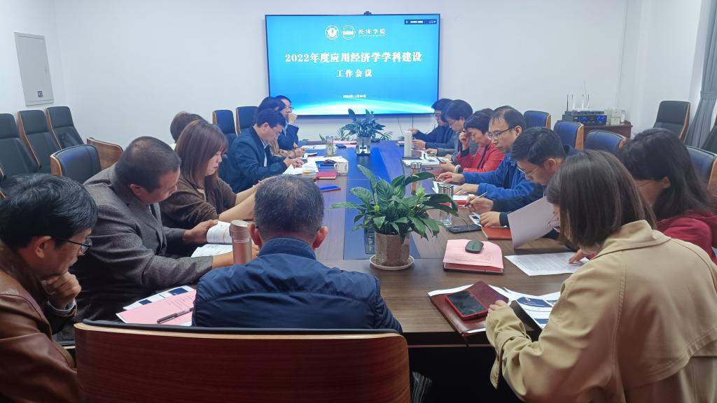 召开2022年度应用经济学学科建设工作会议。学院党政领导班子成员、党委委员、系正副主任、教授代表汇聚一堂,共谋学院学科未来发展。会议由学院党委书记施敏颖主持。