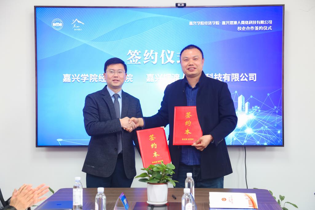 在捐资助学捐赠仪式环节,校社会合作处副处长李丹丹和嘉兴摆渡人网络科技有限公司总经理王学成代表双方单位签署捐赠协议,嘉兴摆渡人网络科技有限公司向嘉兴学院教育发展基金会捐赠叁拾万元。