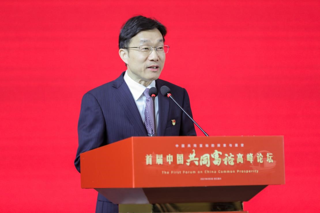 陈先春在致辞中指出,今年两会期间,国家明确指出要支持浙江高质量发展建设共同富裕示范区,主要是探索推进共同富裕的体制机制和制度体系,形成可复制可推广的经验,建立示范区的标杆。首届中国共同富裕高峰论坛在嘉兴召开,来自全国各地的权威专家和一流学者汇聚中国革命红船起航地,围绕共同富裕理论演变和实践探索、乡村振兴与农民收入、收入分配与人力资本等主题开展深入的研讨交流,必将有助于我们更加全面理解和把握共同富裕的理论内涵,有助于深入推动城乡融合和区域协调,催生出更多具有学术价值的研究成果。他希望,各位领导和专家学者借此机会到浙江各地多走走多看看,为繁荣浙江省哲学社会科学、为推进浙江省共同富裕建设多提宝贵意见。