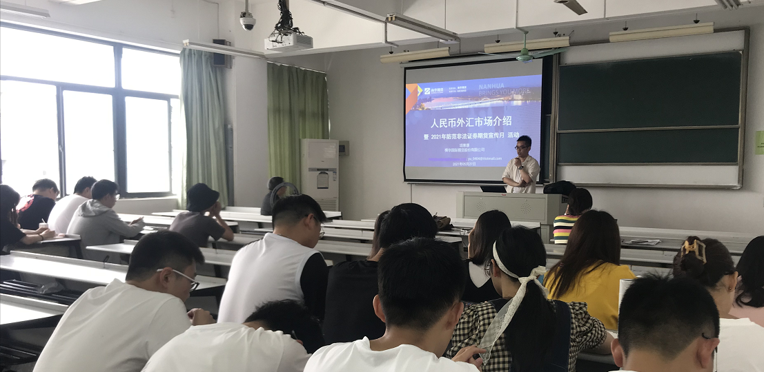 5月27日,嘉兴学院日本av 金融系特邀横华国际期货股份有限公司的项寒康老师为师生进行防范非法证券期货宣传并举办外汇市场知识讲座。