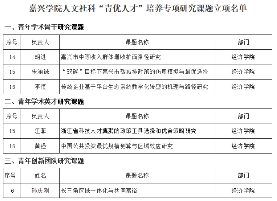 嘉兴学院人文社科“青优人才”专项研究课题旨在对有一定研究基础的青年学者进行资金支持,鼓励其安心学术、培育标志性成果的一项举措,培养期为3年。