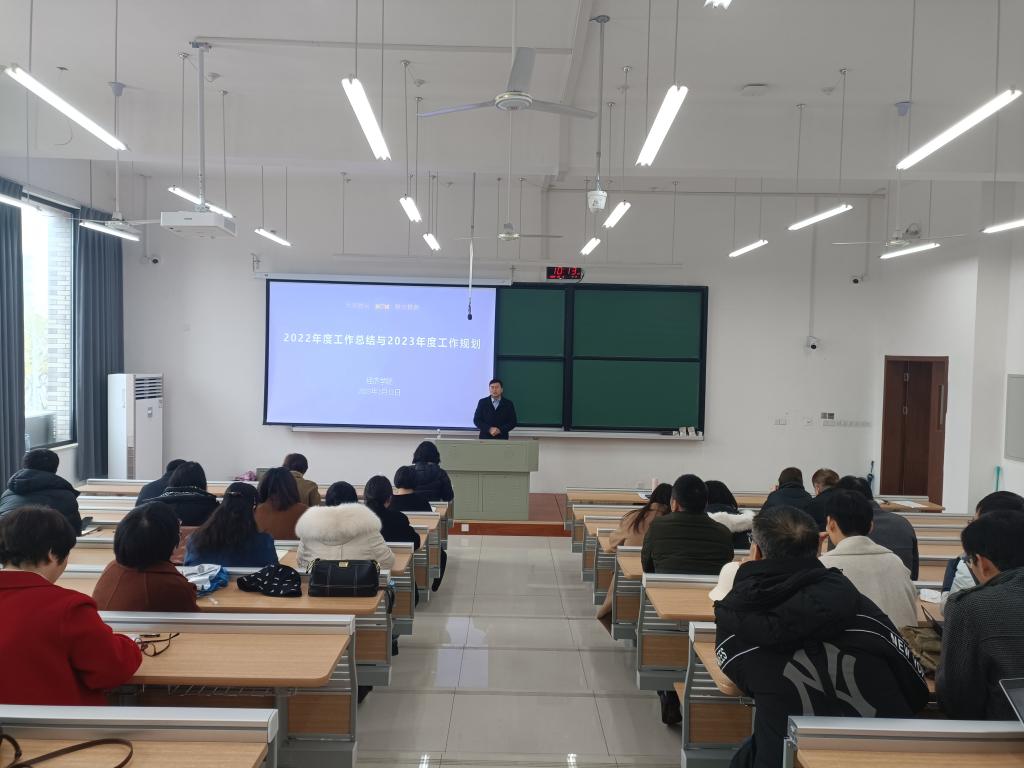 院长文雁兵通报了上一年学院工作取得的成效,并围绕新学期重点工作进行了部署。他要求,全院上下要以饱满的精神状态投入到各项工作中去,聚焦立德树人根本任务,坚持“党建领院、教学立院、科研兴院、学科强院”发展思路,根据学校“1358”发展战略,深入实施学院“1314”发展规划,创新深化、改革攻坚、开放提升,开辟新赛道,形成新优势。学院班子其他成员结合分管工作介绍了新学期工作思路并布置重点工作。