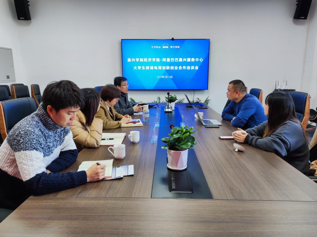 与嘉兴摆渡人网络科技有限公司(阿里巴巴国际站嘉兴服务中心)举行大学生跨境电商创新创业合作洽谈会。