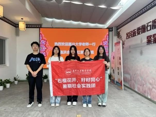 随后,实践团成员前往石榴红家园进行实地考察。石榴红家园是集民族政策宣传、民俗物品展示、助推共同富裕、各族群众服务管理等功能为一体的特色地标,彰显着各民族文化融合的独特魅力。