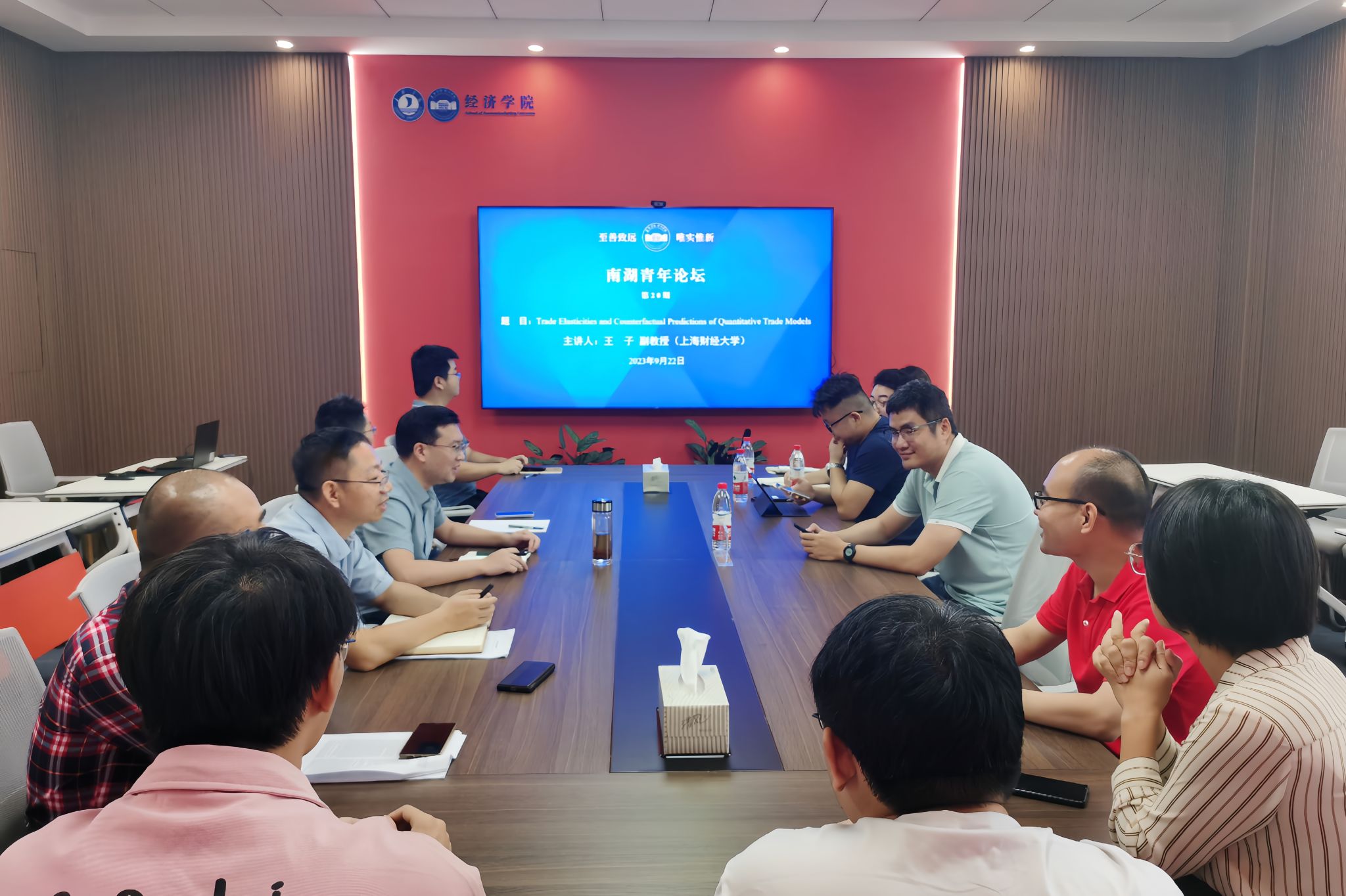 922日上午,日本av 在尚德楼268会议室成功举办第20期南湖青年论坛。上海财经大学王子副教授(长聘)应邀作题为《Trade Elasticities and Counterfactual Predictions of Quantitative Trade Models》的学术报告,日本av 院长文雁兵教授主持,学院多名教师共同参与研讨。