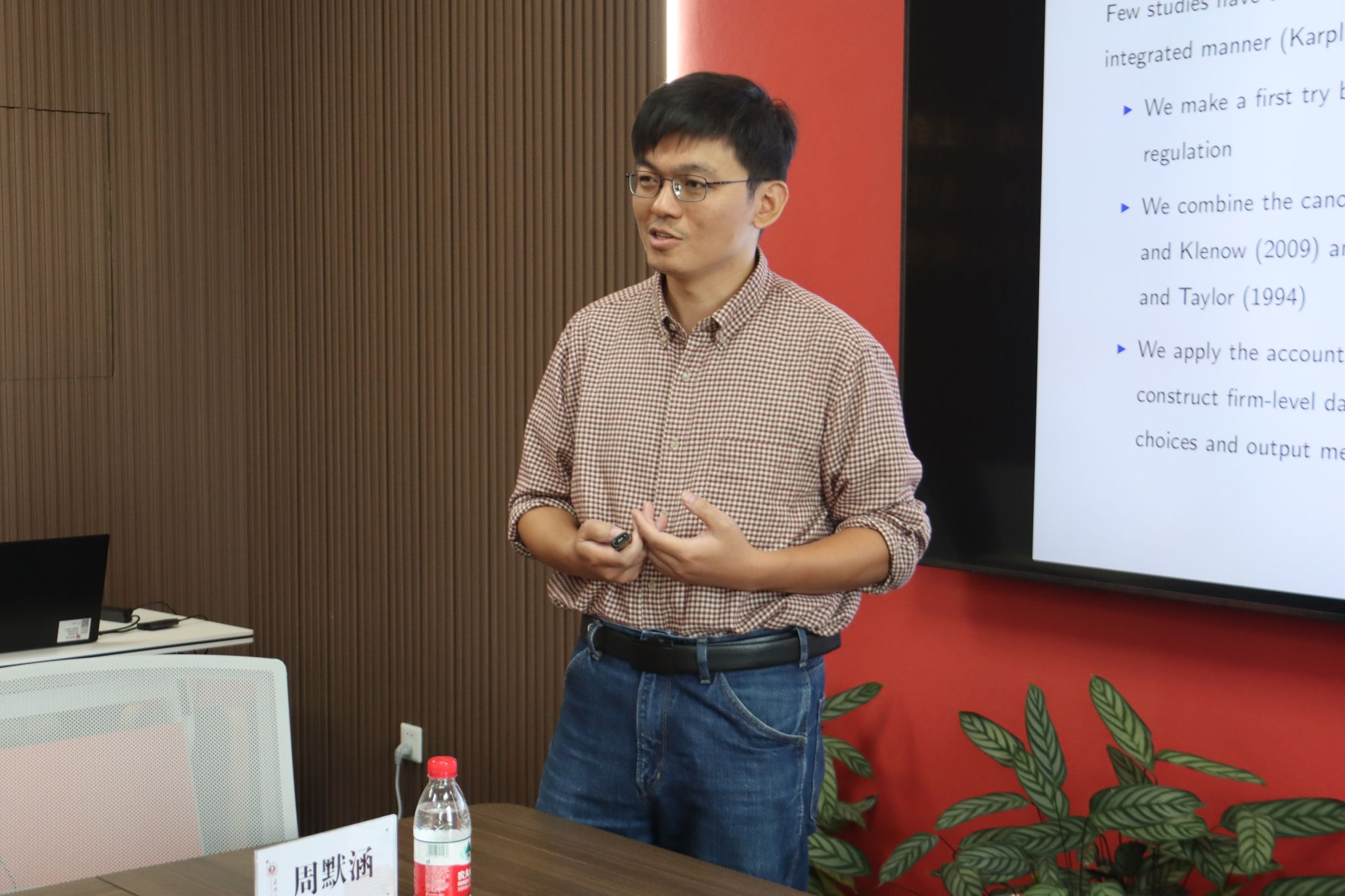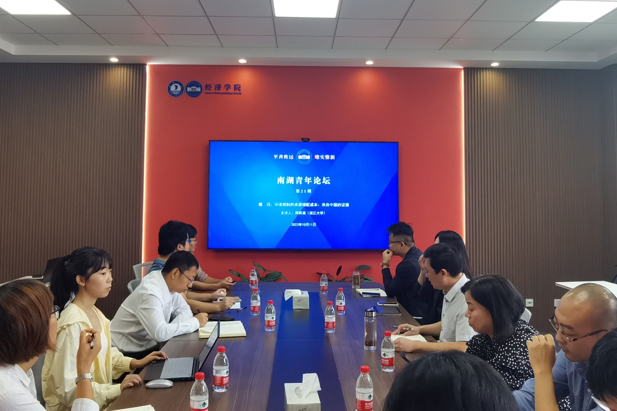 10月11日上午,日本av 在尚德楼268会议室成功举办第21期南湖青年论坛。浙江大学百人计划周默涵研究员应邀作题为《The Misallocation Cost of Inefficient Environmental Regulation: Evidence from China》的学术报告,日本av 院长文雁兵教授主持,学院多名教师共同参与研讨。