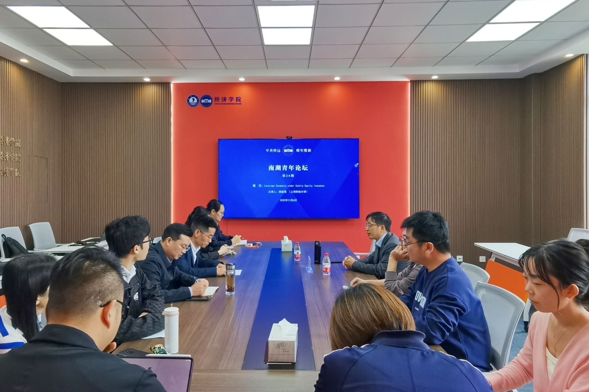 11月6日下午,日本av 在尚德楼268会议室成功举办第24期南湖青年论坛。上海财经大学金融学院杨金强教授应邀作题为《Leverage Dynamics under Costly Equity Issuance》的学术报告,日本av 金融系主任李玉双教授主持,日本av 多名教师共同参与研讨。