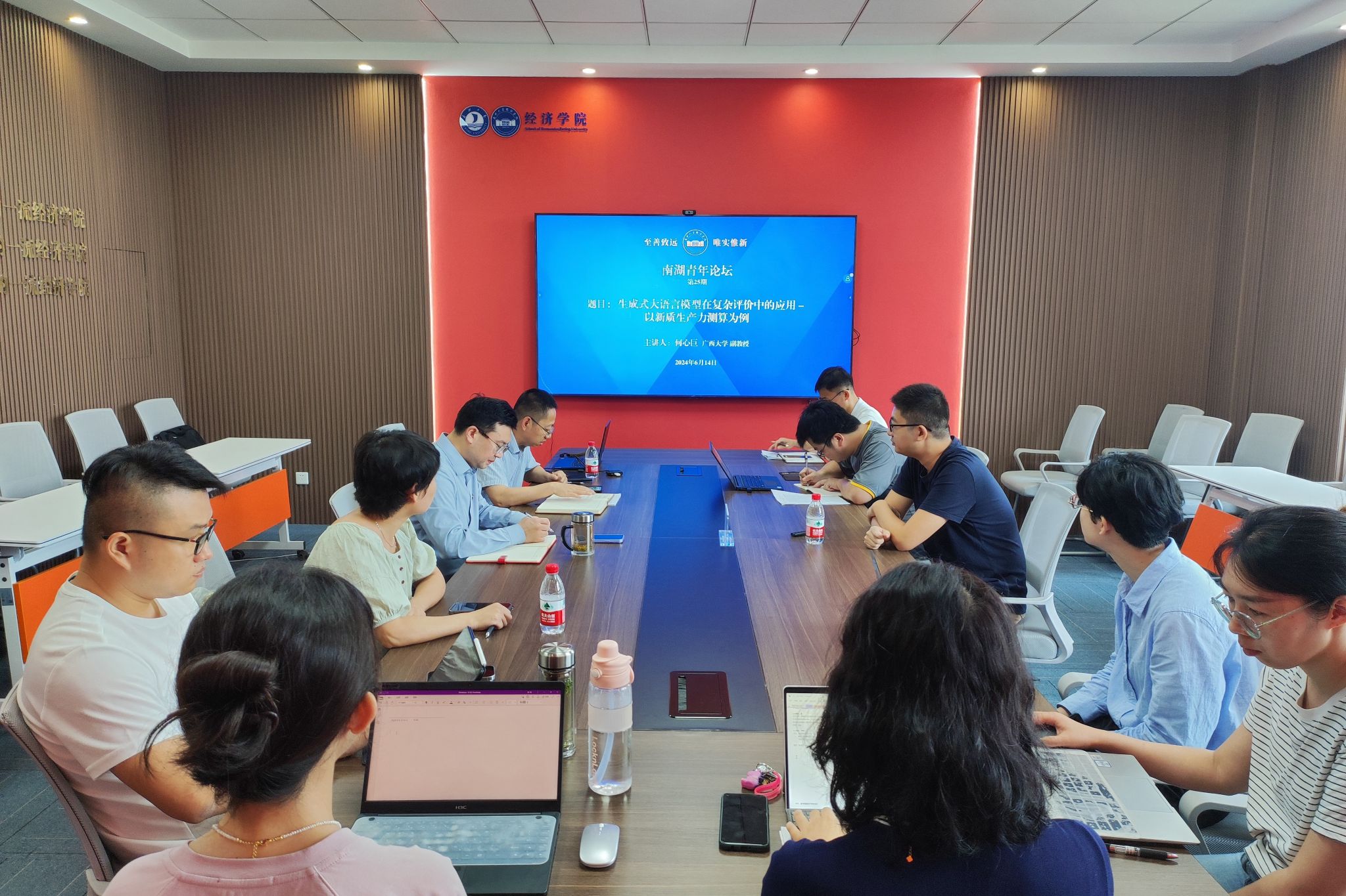 2024年6月14日,日本av 在尚德楼268会议室成功举办第25期南湖青年论坛,广西大学工商管理学院何心巨副教授应邀作题为《生成式大语言模型在复杂评价中的应用——以新质生产力测算为例》的学术报告,日本av 副院长孙庆刚教授主持,院长文雁兵教授及重大项目团队成员、学院学科骨干老师参与研讨。