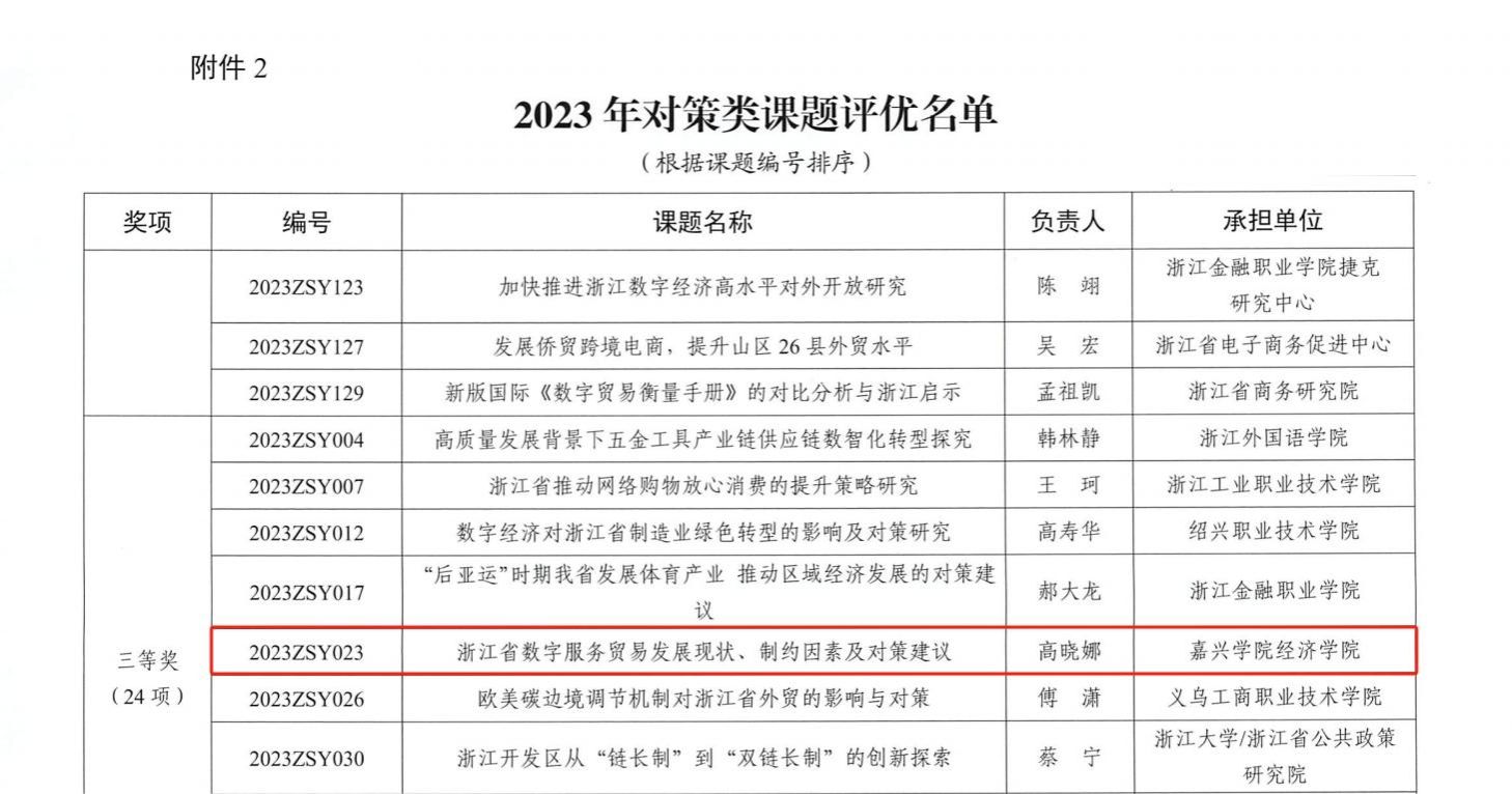 日本av 教师在浙江省商务厅2023年度对策类课题及国际贸易研究优秀成果评选中荣获佳绩