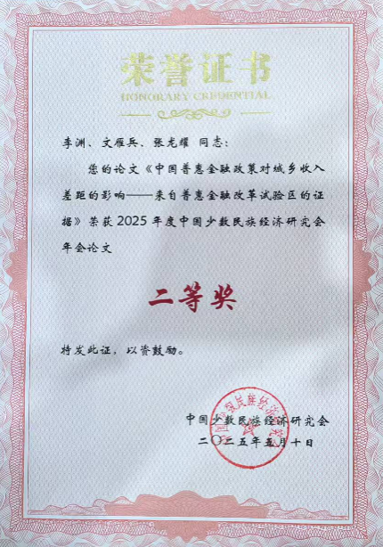 李渊博士合作论文荣获中国少数民族经济研究会2025年度年会论文二等奖