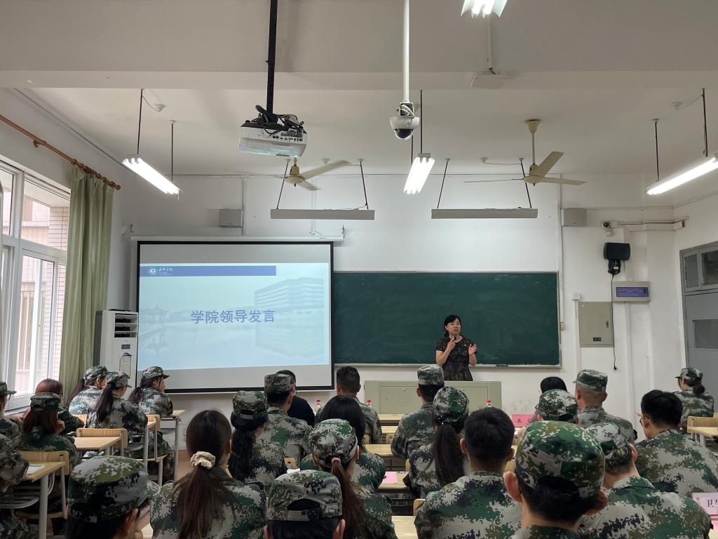 2021年学生军训教官见面会在教一105举行,学院党委书记施敏颖、九连各排教官、指导员、辅导员、各排副排长、卫生员和军训学员代表参加。