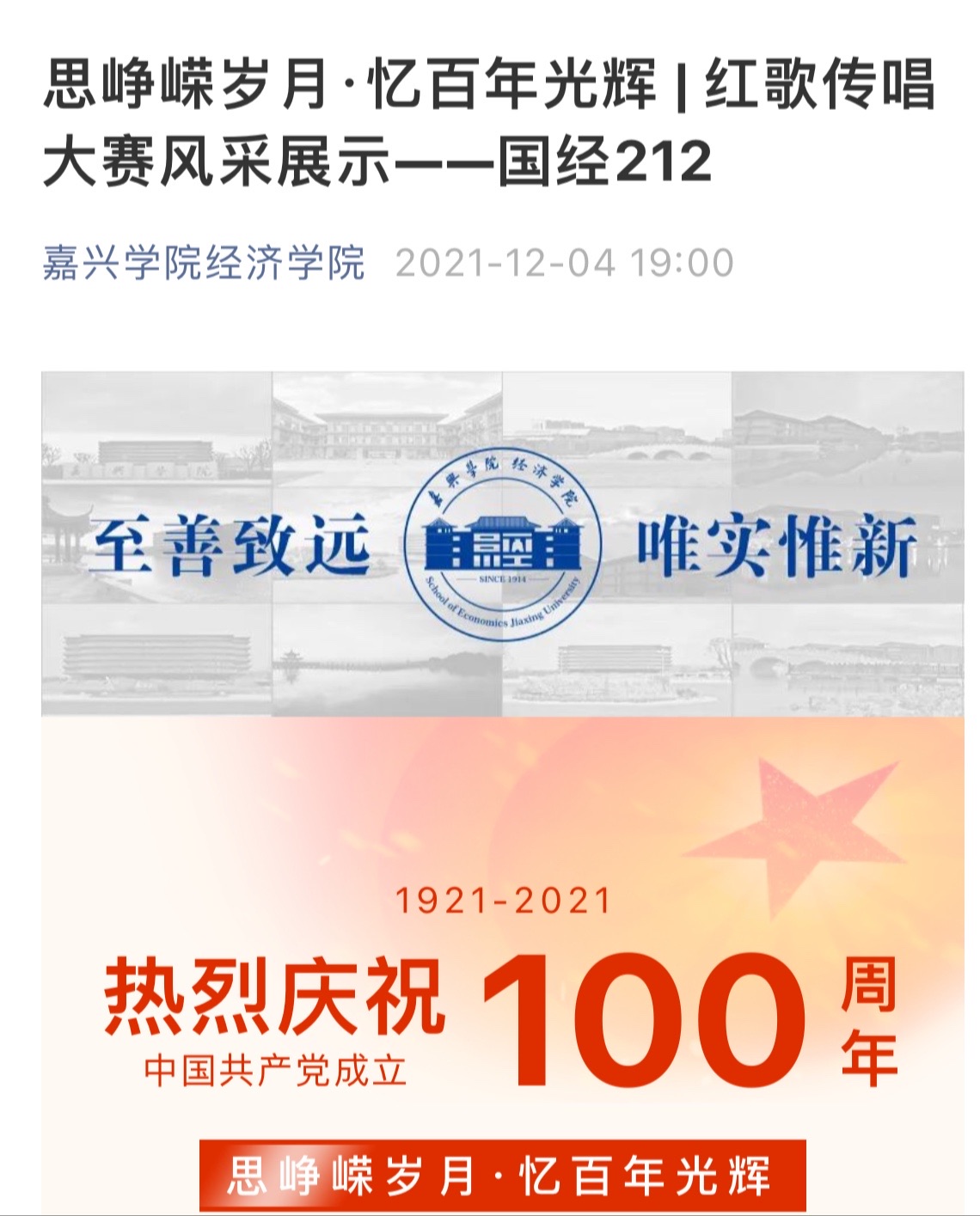 学院各团支部积极响应,将红歌与团日活动相结合,共计300余人参与,本次活动收到了十余个参赛作品。经过层层筛选,金融211《国家》、国经212《少年》及团学和声组《我和我的祖国》脱颖而出。以音乐感悟党史,用歌声铭记初心。经院学子用歌声来赞颂党的光辉百年,表达了对党、对祖国的热爱,充分展现了团支部的凝聚力。追忆红色记忆,传承红色基因,相信经院学子们一定会不忘初心,牢记使命,继续奋斗。