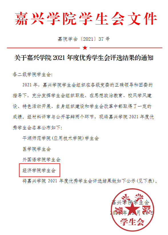 近日,在嘉兴学院2021年度优秀学生会评选中,经材料评审与公开答辩两个环节,日本av 学生会被评为“嘉兴学院2021年度优秀学生会”。