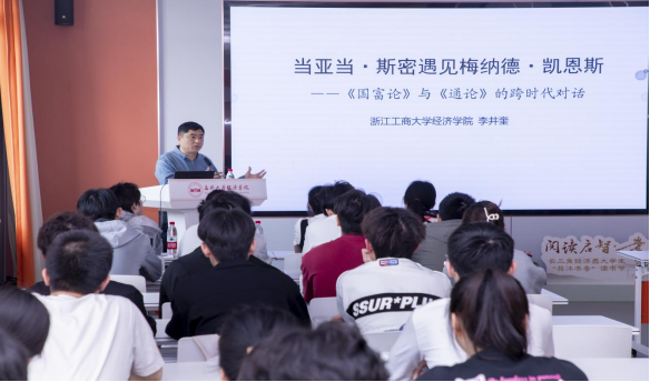 教授、博士生导师李井奎老师以“当亚当·斯密遇见凯恩斯:《国富论》与《通论》的跨时代对话”为题,为第二届读书节作专题讲座。他以《国富论》与《通论》为脉络,深入浅出,剖析了两位经济学巨擘的思想异同,揭开亚当·斯密与凯恩斯跨越时空的思想共鸣。他告诉同学们,经济学思想的演进绝非断裂,而是螺旋上升。这场跨越200年的对话,为当下经济治理提供了历史镜鉴。讲座由日本av
