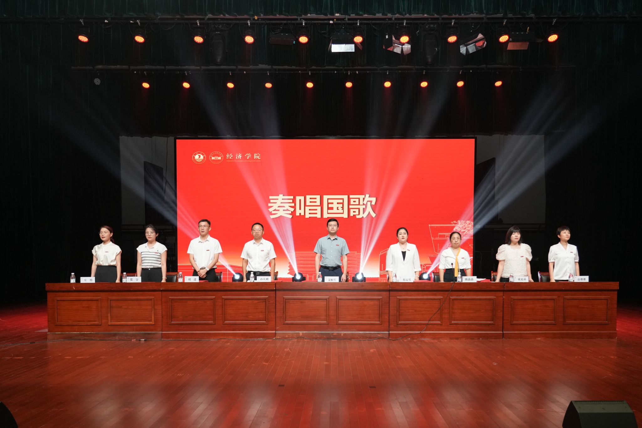 当徐晨莹、刘慧媛、赵家铭、钱锦等同学带来歌曲串烧,《如愿》《灯火里的中国》《我和我的祖国》唱响全场,台上台下合声共鸣。那一刻,歌声成誓言,光影成信仰——这是经院学子最热烈的青春告白。