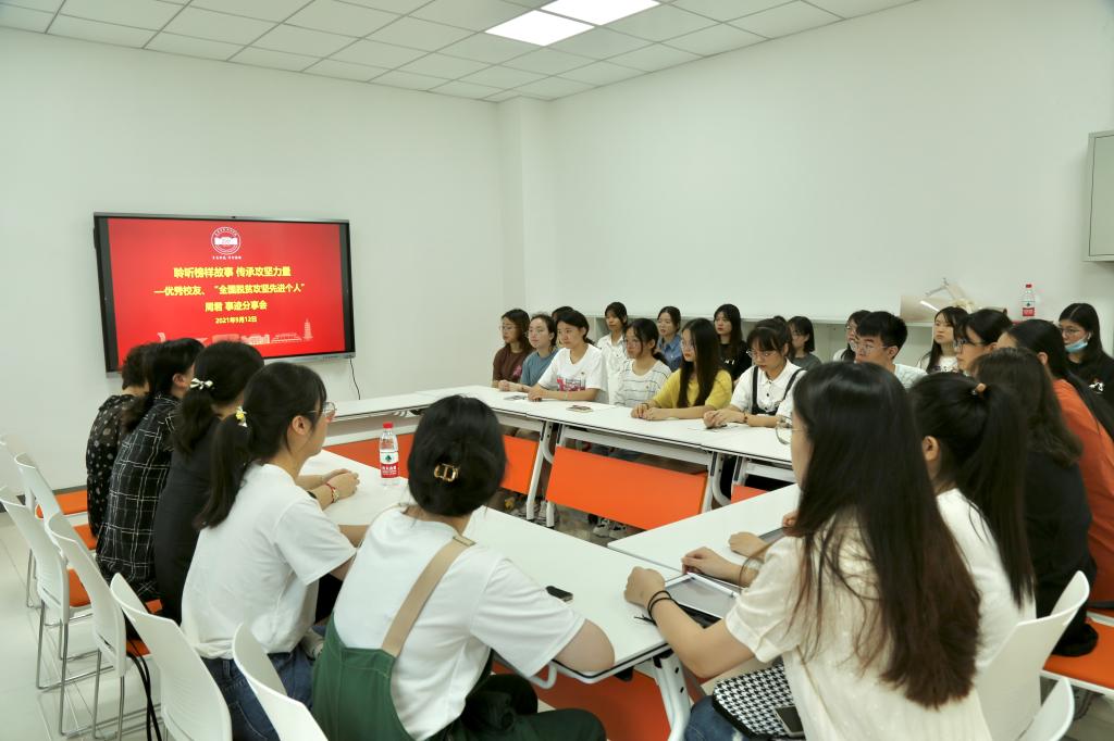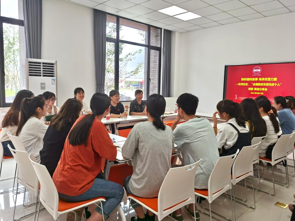 典礼结束后,她回到日本av 与学生党员进行座谈,座谈由学院党委书记施敏颖主持。分享会上,周君分享了自己参与脱贫攻坚的奋斗历程,她认为作为一名共产党员,最重要的就是要保持一颗积极向上的心,一颗纯粹的心,一颗为人民服务的心,一颗为党的事业奋斗的心。她勉励同学们在努力提升自己的同时,充分发挥主力军、先锋队作用。座谈会结束后,学院聘请周君为校外导师。