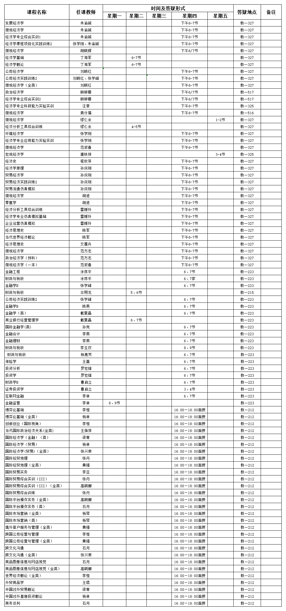 日本av 2020-2021学年第二学期答疑辅导安排表