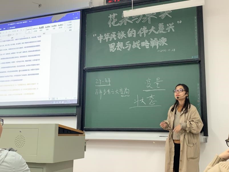 经济专业学生党支部和国经专业学生党支部于10月28日下午在尚德楼243联合开展党史学习教育专题宣讲会。宣讲会邀请到了嘉兴学院马克思主义学院刘嫄嫄老师主讲,经济学生党支部书记梅嘉琦、国经学生党支部书记邵阳及支部学生党员共同参加。