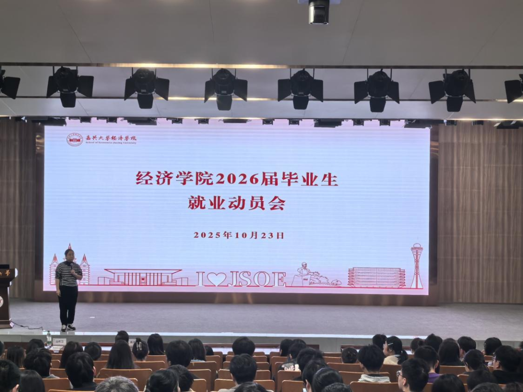 在学校图书馆一楼报告厅召开2026届毕业生就业动员大会,学院党委副书记陈晶晶,嘉兴市金融业联合会秘书长陈伦杰、副秘书长高明慧共同出席本次活动,学院2026届全体毕业生参加动员大会。