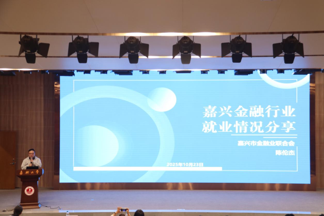 嘉兴市金融业联合会秘书长陈伦杰结合金融业发展特点,向毕业生们介绍了地方金融业的就业机遇。他特别提到,嘉兴作为唯一入选全国首个跨省域科创金融改革试验区的地级市,聚焦科技金融先行先试,持续加快科创金融产品服务创新,不断助力科创企业发展壮大。嘉兴市金融行业稳定性较强,金融机构从业岗位分布形态广,金融改革创新不断强化,是同学们干事创业的热土,鼓励毕业生们加强能力锻炼、提升综合素质、保持良好心态。
