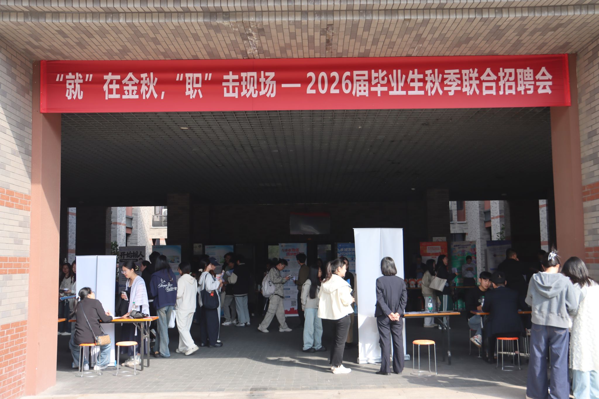 联合外国语学院在铭德楼举行“‘就’在金秋,‘职’击现场”——2026届毕业生秋季专场招聘会,汇聚中信证券、中国光大银行、中国人民财产保险、嘉兴市索贝进出口有限公司等50余家知名企业,涵盖金融证券、数字经济、跨境电商等领域,释放600+优质岗位和复合型岗位,吸引近500名毕业生现场求职,为毕业生多元化就业搭建广阔平台。