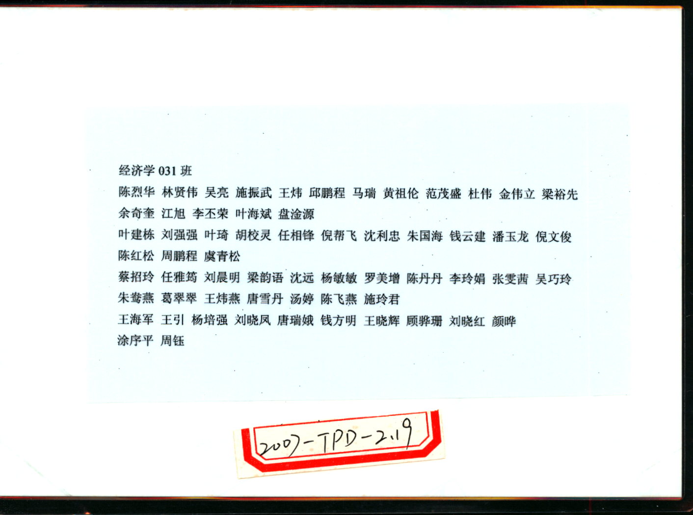 2007届毕业名录