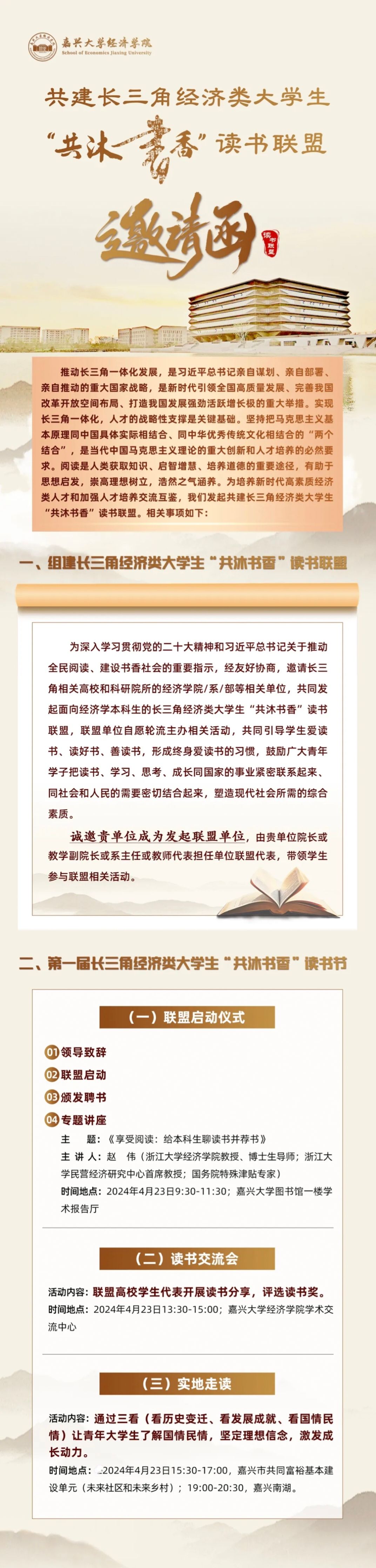 【会议通知】共建长三角经济类大学生“共沐书香”读书联盟